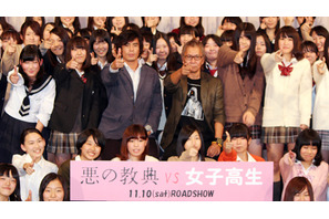 俳優の伊藤英明が10月30日(火)、都内で行われた主演最新作『悪の教典』の女子高生限定試写会に、メガホンをとった三池崇史監督と共に出席し、上映後の舞台挨拶に立った。