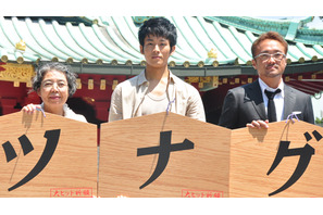 映画『ツナグ』のヒット祈願イベントが8月13日(月)に神田明神(東京・神田)で行われ、主演の松坂桃李と樹木希林、平川雄一朗監督と一般から招待された15組のペアが出席。映画の完成を報告すると共に祈りを捧げた。