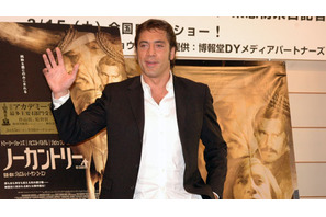 先日発表されたアカデミー賞で作品賞を含む4部門でオスカーを獲得。アメリカ西部を舞台に、麻薬に絡んだ大金を巡る3人の男たちのドラマを描いた『ノーカントリー』が3月15日(土)より公開される。本作でミステリアスな殺し屋を演じ、見事アカデミー賞最優秀助演男優賞に輝いたハビエル・バルデムが初来日を果たし、3月11日(火)に記者会見が行った。
