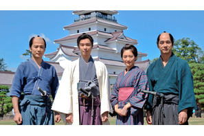 2013年のNHK大河ドラマとして注目を集めている、綾瀬はるか主演で贈る「八重の桜」。クランクインから3日目となる9月13日(木)、ドラマの舞台となる福島県会津若松市の鶴ケ城で会見が行われ、主人公・山本八重役の綾瀬さんを始め、西島秀俊、長谷川博己、玉山鉄二が出席した。