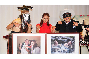 「キャイ~ン」の天野ひろゆき&ウド鈴木と女優の平愛梨が8月7日(水)、都内で開催された映画『ローン・レンジャー』公開を記念写真投稿コンテストの表彰式に特別審査員と…