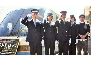 池松壮亮、橋本愛ら映画『大人ドロップ』キャスト陣が3月23日(日)、映画の撮影が行われた伊豆に凱旋。伊豆急行の「1日駅長」および「1日ミス伊豆急」に任命され、この日のための臨時の記念列車が運行した。