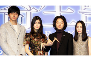 『寄生獣 完結編』の完成披露試写会が4月13日(月)に開催され、主演の染谷将太をはじめ、深津絵里、阿部サダヲ、橋本愛、新井浩文、ピエール瀧、山崎貴監督が上映前の舞台挨拶に出席した。