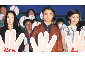 4月25日(土)、『寄生獣 完結編』が全国334館(422スクリーン)で封切られ、東京・TOHOシネマズスカラ座で初日舞台挨拶が行われた。主演の染谷将太をはじめ、深津絵里、橋本愛、新井浩文、ピエール瀧、山崎貴監督が登壇し、超大作の“完結”に感無量の面持ちだった。