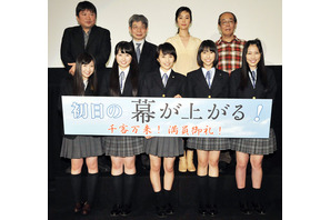 「ももいろクローバーZ」主演の映画『幕が上がる』の完成披露試写会が1月27日(火)に開催され、百田夏菜子、玉井詩織、高城れに、有安杏果、佐々木彩夏、本広克行監督が舞台挨拶に登壇。