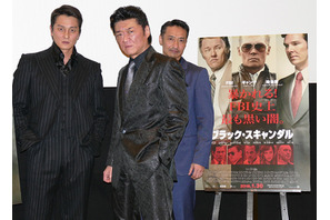 ギャングのボス、FBI捜査官、有力政治家という幼なじみ3人が、FBI史上最悪の汚職事件を引き起こす米映画『ブラック・スキャンダル』の試写会が1月21日(木)、都内で行われ、コワモテ俳優の小沢仁志、山口祥行、本宮泰風が出席した。
