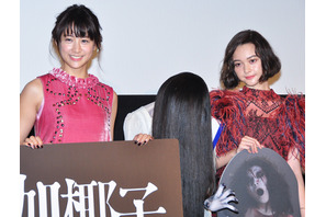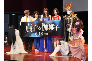 日本発の2大ホラークィーンが激突する映画『貞子vs伽椰子』の完成記念イベントが5月23日(月)に開催。山本美月、玉城ティナ、佐津川愛美、白石晃士監督、さらに主題歌を歌う「聖飢魔II」のデーモン閣下、そして貞子、伽椰子、俊雄も来場し観客を恐怖に叩き落した。