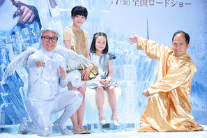 映画『スノーホワイト/氷の王国』の公開を前に、総製作費1千万円の“氷の玉座”がお披露目! 5月24日(火)に行われた除幕式に本田望結&本田紗来姉妹、「トレンディエンジェル」のたかし、斎藤司が登場した。