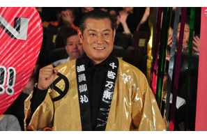 松平健、“神”役なのに将軍スタイルで駕篭で現れ、くす玉を一刀両断!