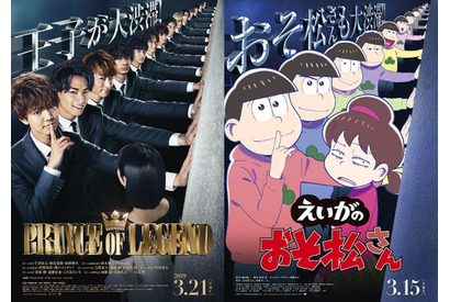 劇場版『えいがのおそ松さん』と『PRINCE OF LEGEND」の映画公開を記念したスペシャルコラボが実現! 松野家の6つ子たちが“王子”さながらに壁ドンを披露し、大渋滞している。