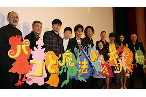 2004年、2008年と2度にわたる公演で多くの感動の声を集めた、後藤ひろひと原作の舞台「MIDSUMMER CAROL ガマ王子vsザリガニ魔人」。本作を『下妻物語』、『嫌われ松子の一生』で色彩美あふれる映像世界を見せてきた中島哲也の手で映画化した『パコと魔法の絵本』が9月に公開される。7月29日(火)、本作の完成披露会見が開かれ、中島監督を筆頭に、役所広司、アヤカ・ウィルソン、妻夫木聡、土屋アンナ、加瀬亮、小池栄子、劇団ひとり、山内圭哉、國村隼、上川隆也ら豪華キャストと原作の後藤氏の総勢12名が集結した。