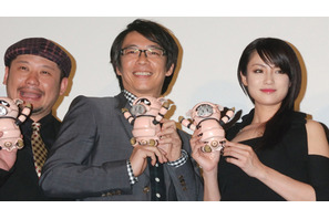 日本の国民的人気アニメを、おなじみのフレーズをそのままに、実物大のメカたち、そして櫻井翔ら豪華キャストで実写化させた『ヤッターマン』。TVを中心に一斉プロモーションを展開し大きな注目を集めてきた本作が3月7日(土)、遂に公開を迎えた。初回上映後の舞台挨拶に櫻井さんと福田沙紀、深田恭子、生瀬勝久、ケンドーコバヤシ、岡本杏理、阿部サダヲら俳優陣と、完全実写化を成し遂げた鬼才・三池崇史が登壇した。