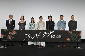 『ファーストラヴ』公開を記念した初日舞台挨拶に、北川景子をはじめ、中村倫也、芳根京子、窪塚洋介、さらに木村佳乃、板尾創路、そして堤監督が登壇。